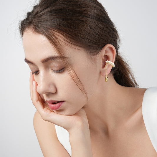 Tassel Heart Pendant Temperament Pearl Double Layer Exquisite Ear Clip